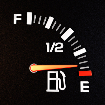 You are on a high-traffic freeway. Your gas tank reads 1/4 of a tank remaining; the car estimates that there is 100 kilometers left in the tank; the next gas station is 120 kilometers away. How do you avoid running out of gas?